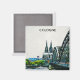 Belle peinture vintage rétro de Cologne Magnet présentant la cathédrale (Kölner Dom), le pont Hohenzollern au-dessus du Rhin, Cologne, Allemagne. Un souvenir unique et une idée cadeau pour chaque touriste.