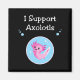 Montre un axolotl rose-violet et le texte "I Support Axolotl" Un axolotl est un amphibien, ou salamandre, qui vit dans l'eau. Le 1er février est la Journée nationale de l'Axolotl au Mexique parce qu'il s'agit d'une espèce en voie de disparition. Peu de gens savent ce qu'est un axolotl, mais vous pouvez être un super héros et venir à l'secourt de cette jolie créature.