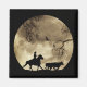 Un cowboy sur son cheval arrondit le bétail à la lumière d'une grande pleine lune.