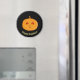 Mignonne face citrouille sur aimant rond arrière - plan noir. Le texte peut être personnalisé.