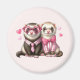 Aimant avec une jolie illustration. Une paire de loutres en vêtements rose. Portant des chemises rayées, l'une portant une cravate et l'autre portant un arc. Entouré de coeurs d'amour.