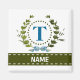 Une couronne de lierre délicate avec un ruban rayé bleu est superposée sur un fond blanc frais. La conception appropriée pour un mariage comporte le monogramme "T" en bleu. L'aimant peut être personnalisé avec n'importe quel nom sur la bannière de ruban vert. Astuce de conception : pour la police présentée ici, utilisez des majuscules pour le nom.