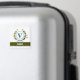 Une couronne de lierre délicate avec un ruban rayé bleu est superposée sur un fond blanc frais. La conception appropriée pour un mariage comporte le monogramme "V" en bleu. L'aimant peut être personnalisé avec n'importe quel nom sur la bannière de ruban vert. Astuce de conception : pour la police présentée ici, utilisez des majuscules pour le nom.