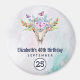 Enregistrez l'aimant de date d'anniversaire avec un arrière - plan d'aquarelle turquoise et pastel. Un crâne animal chic boho avec un bouquet floral sur la tête et des petits papillons qui fleurissent.