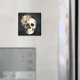 Ajoutez un style gothique à votre décor de cuisine d'Halloween. Le design présente un crâne floral blanc sur un arrière - plan à texture noire. Le crâne est accentué d'une belle rose blanche.