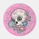 Crâne à sucre Dia de los Muertos (Jour des Morts) aux couleurs pastel avec des fleurs posées sur une toile d'araignée.