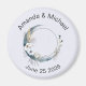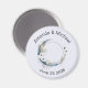 Enregistrez la date / keepsaké aimant avec une illustration mystique. Une lune bleu foncé avec un contour élégant en cercle mince et des fleurs blanches fleurissent le long de ses bords.