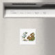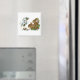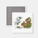 Aimant de Noël carré vintage : lapins lapins et oiseaux nains dans la neige