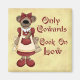 "Seules lâches cuisent à basse altitude !" Drôle dicton pour les cuisiniers de loisir ou les cuisiniers de profession. Wordart fantaisie, et une mignonne maman ours portant une robe rouge avec un tablier et portant les outils de son métier. Un design humoristique pour votre cuisinier préféré !