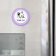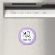 Un aimant avec le texte : Merci et conçu avec une illustration d'un chat kitty souriant et agitant avec un tache noire autour de son oreille. Arrière - plan de pois violet. Simple, mignon et adorable.