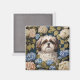Aimant Cute Shih Tzu Chiot Blue hydrangea fleurs