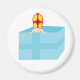 Cutieful Kids Art Funny St. Nicholas St. Nick, en hollandais "Sinterklaas" se cachant dans une boîte cadeau, Magnet du jour de St. Nick