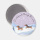 Un aimant festif avec un design super mignon de deux dachshunds vivants qui courent joyeusement dans la neige hivernale, dans un style aquarelle. Les mots en haut sont 'Dachshunds through the snow' dans une élégante typographie de script. Les petits ludiques apportent une note supplémentaire de joie festive à toute surface magnétique. Un cadeau de nouveauté idéal, c'est un accessoire amusant pour la saison de Noël. pour les propriétaires de doxie et les autres amoureux des animaux.