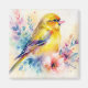 Cet aimant présente une œuvre d'art à l'aquarelle d'un oiseau chanteur jaune entouré de fleurs botaniques douces dans des teintes roses, sarcelles et violettes.