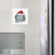 Magnet avec illustration d'une tête de petit éléphant mignon avec casquette Père Noël, conception de vacances de Noël pour les enfants, illustré par Radka Kavalcova