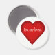 A graphic heart by artist/designer Charmaine Paulson with the texte "You are loved" on a a magnet.