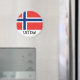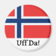 Magnét rond représentant le drapeau de la Norvège et "Uff da !" qui est norvégien pour un soupir de résignation face à la situation. Exprimez votre côté Norsk !