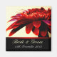 photographie en gros plan de fleur de gerbera rouge avec bordure noire et garniture de satin rouge - personnalisez en ajoutant vos détails - tout est entièrement personnalisable, y compris la couleur, la taille et le style de police : Fait un excellent souvenir pour vos invités lors de mariages, événements spéciaux, anniversaires ou toute réunion