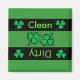 Un aimant pour lave-vaisselle vert avec un trèfle vert irlandais avec des mots disant propre & sale fait un joli aimant lave-vaisselle sale propre