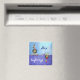 Animal Parade Holiday Giraffe est en train de se faire festive tout décoré dans un chapeau de Père Noël rouge et une couronne de saint vacances de l'avant et du dos avec des arrière - plans bleus texturés. Marquez votre lave-vaisselle propre (têtes) ou sale (queues) et ne jamais être confondu à nouveau sur votre cycle de lavage de vaisselle.