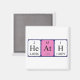 Heath a été décrit comme He At H (Helium Astatine Hydrogen) sur un aimant pour le scientifique en vous.