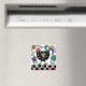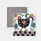 Un mignon aimant de poulet noir fait dans un style d'art populaire avec des fleurs et des coeurs.