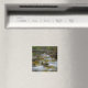 Aimant photo souvenir avec de l'eau avec un flou de mouvement dans une crique rocheuse dans une forêt en Norvège avec un arbre tombé comme un pont au-dessus.