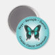 Montrez votre soutien à la sensibilisation au cancer de l'ovaire grâce à la conception turquoise du papillon sur un aimant de réfrigérateur.