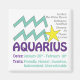 Cet Aimant Aquarius Traits fait un cadeau d'anniversaire parfait pour tout Aquarius. Aquarius est le onzième signe du zodiaque et comprend tous les individus nés du 20 janvier au 18 février. Le symbole Aquarius est le porteur d'eau. Les traits de personnalité Aquarius sont amicaux, honnêtes, inventifs, indépendants et imprévisibles. Aquarius Birthstone est Améthyste et Aquarius Ruling Planet est Uranus
