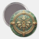 Il s'agit d'un aimant rond qui a un marbre vert avec garniture or.