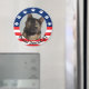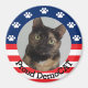 Qui ferait un meilleur président que son propre chat ? Cet aimant affiche des empreintes de pattes blancs sur un arrière - plan bleu, et des rayures rouges et blanches avec le texte "Fière DemoCAT". Vous pouvez ajouter une photo de votre chat, et customiser le texte à votre goût. Ce serait un cadeau mignon pour les amoureux de les chats.