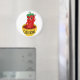 Un personnage de dessin animé rouge et poivre chaud dans un bol de chili. Design original. Magnets personnalisés. Idée de décoration pour les gourmands épicés.