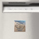 Le couple heureux est "Se marier !" Belle photographie originale de deux coeurs écrits ou dessinés dans le sable le long de l'eau bleue de l'océan pour signifier l'amour et l'amour sur un aimant carré populaire. Insérez facilement la date du grand jour spécial et mettez vos noms personnalisés dans le coeur pour personnaliser. Grand concept pour le prochain mariage de destination de plage d'été Enregistrer la date, ou facilement changer le texte pour remercier les faveurs de fête pour vos invités, etc.