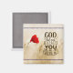 L'aimant représente une fleur rouge solitaire avec un champ de blé muet dans l'arrière - plan. Il comporte une citation chrétienne encourageante, "Dieu ne vous a pas créé pour vous mélanger."