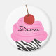 Montrez votre diva intérieure avec ce cupcake sassy avec glaçage rose, enveloppement de cupcake imprimé zèbre et une cerise rouge succulente sur le dessus.