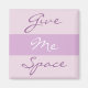 Nous avons tous besoin d'un peu d'espace, que ce soit la première chose du matin avant la première tasse de thé ou de café, ou lors d'un moment solitaire de réflexion plus tard dans la journée. Voici une façon élégante de transmettre le message que vous avez besoin de temps seul avec les mots Give Me Space dans une police de script contre un délicat arrière - plan mauve.