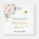 Un fond blanc chic. Décoré avec une fleur blanche (pivoine) et des feuilles d'eucalyptus peintes à l'aquarelle verte, des brindilles, du feuillage et une brindille en faux or. Une abeille bourdonnante heureuse et souriante. Personnalisez et ajoutez le nom de la future mariée et une date. Lettres noires et dorées.