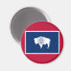Ce design présente le drapeau de l'état du Wyoming, qui est un état doublement enclavé dans l'ouest des États-Unis. C'est le deuxième état le moins peuplé du pays. Le Wyoming est bordé au nord par le Montana, à l'est par le Dakota du Sud et le Nebraska, au sud par le Colorado, au sud-ouest par l'Utah et à l'ouest par l'Idaho et le Montana. Le surnom officiel du Wyoming est "Etat de l'Égalité", mais il est aussi parfois connu comme "Etat Cowboy" ou "Big Wyoming". La moitié ouest du Wyoming est principalement couverte par les chaînes des Rocheuses, tandis que la moitié est de l'état est une prairie à haute altitude appelée les Hautes Plaines. Le parc national de Yellowstone est partiellement dans le Wyoming et le parc national de Grand Teton est entièrement dans l'état. Cheyenne est la capitale de l'état et la ville la plus peuplée du Wyoming. Le drapeau de l'état du Wyoming comprend une silhouette de bison américain. Le rouge symbolise les Amérindiens et le sang des pionniers qui ont donné leur vie. Le blanc est un symbole de pureté et de droiture. Le bleu est la couleur du ciel et des montagnes lointaines.