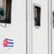 Drapeau cubain dans un style grunge avec le nom du pays dans la langue locale imprimé ci-dessous.