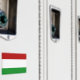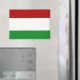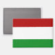 Un aimant rectangulaire coloré arborant le drapeau hongrois, présentant son emblématique design rouge, blanc et vert.