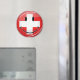 Montrez votre fierté nationale pour le magnifique pays montagneux de Suède avec ce drapeau suisse rond brillant et souriant.
