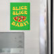 Montrez votre amour des pizzas avec cet aimant amusant avec des tranches de pizza, et l'expression Slice, Slice Baby!