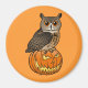 Notre duc Mignon d'Eurasien de bande dessinée est perché placé sur un citrouille découpé. Cette conception de Birdorable d'original est faite pour l'amusement de Halloween ! Vous pouvez customiser ce cadeau ! Déplacez la conception autour, changez la couleur d'arrière - plan ou le style, ajoutent le texte ou les images -- faites-lui vos propres !