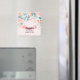 Un aimant pour sauvegarder la date d'anniversaire avec une bordure florale élégante. Fleurs et feuilles en rose et vert.