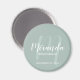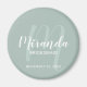 Ajoutez une touche personnelle à votre mariage grâce à un aimant personnalisé de femme de chambre. Cet aimant présente le nom personnalisé de la demoiselle d'honneur dans le style de police de script moderne blanc et monogramme dans le style de police de script moderne vert sage comme arrière - plan avec titre et date mariage en blanc moderne sans serif style de police sur l'arrière - plan vert sage. Parfait aussi pour femme de ménage d'honneur, mère de la mariée et plus.