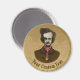 Terrifié Edgar Allan Poe regardant un insecte de l'or grimper sur sa cravate. Croquis de stylo à encre colorée. Texte personnalisé sur le cercle.