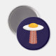 Illustration vectorielle d'un délicieux côté ensoleillé vers l'OVNI frit avec un délicieux faisceau de tracteur tranche de bacon. Mots-clés : oeuf, bacon, petit-déjeuner, OVNI, alien, ensoleillé, côté, dessin animé, espace, extraterrestre, nourriture, mignon, jaune, science, fiction, martien, humour, viande, porc, enlèvement