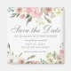 Un élégant bouquet floral de pivoines roses et d'ivoire aquarelles encadre ce magnifique mariage de printemps floral Enregistrer l'aimant Date. Les sprigs de feuilles sages décorent au milieu de la palette de fleurs de pêche qui entourent le magnifique script gris sur ces magnets carrés chics.