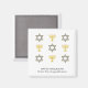 Elégant HAPPY HANOUKKA aimant, montrant faux or et argent STAR OF DAVID et MENORAH dans un motif carrelé. Le texte lit HAPPY HANOUKKA avec un nom d'espace réservé et est PERSONNALISABLE, vous pouvez donc le PERSONNALISER en ajoutant votre nom ou un autre texte. Idéal pour les célébrations Hanoukka, et avec personnalisation peut être adapté à n'importe quel événement sur le thème juif. Choisissez parmi une large sélection de cartes Hanoukka et cadeaux de Berean Designs.