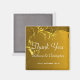 Luxueux Merci mariage or, cet aimant frigo d'inspiration vintage rappellera à vos invités votre journée spéciale, et combien vous avez apprécié leur présence à la cérémonie et à la réception. Cet élégant aimant doré peut être customisé avec vos propres détails, y compris le nom et la date du mariage, ou le texte peut être modifié complètement ou complètement enlevé si vous le souhaitez. Le design comprend une bordure à défilement damassé pour ajouter une touche élégante à vos faveurs de mariage. Cet aimant mariage fait partie d'une collection de mariages plus grande, y compris l'invitation correspondante, RSVP, enregistrer la date, les autocollants et plus, que vous pouvez trouver ici : https://www.zazzle.com/collections/elegant_golden_wedding-119011321871117695